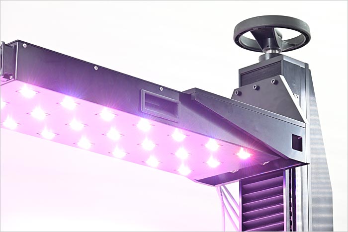 Holmarc HO-SSLD-01 is a large-area, LED-based solar simulator designed for precise and customizable illumination in research and testing, particularly for photovoltaic and material applications, as well as environmental simulations. This advanced system features a vertically adjustable LED source head, allowing for light intensity adjustments from 0.1 to 1 sun over a 22 x 60 cm area. Users can seamlessly switch between manual and PC-controlled operations, benefiting from high-efficiency LEDs with a wavelength range of 380 to 940 nanometers. Key advantages include exceptional temporal stability, a long lifespan, zero maintenance, quick startup, spectral tunability and enhanced safety due to the absence of explosion risk. The simulator accurately replicates solar spectrum conditions, includes a vertical height adjustment assembly with a 0 to 350 mm stage travel, and operates on a 230 Volts 50 Hz input, ensuring stable and reliable results for various research and testing needs.
