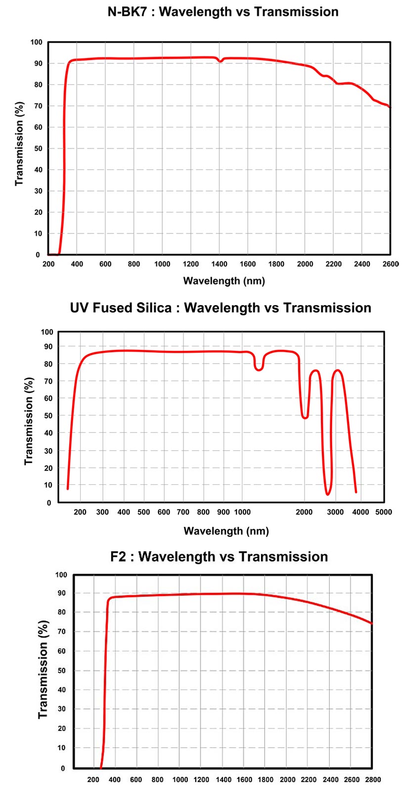 Right Angle Prisms are used to re-direct a beam of light at 90 degrees from the incident direction or used as 180° beam retroreflector. We offer these prisms uncoated or with five different coating options, namely;